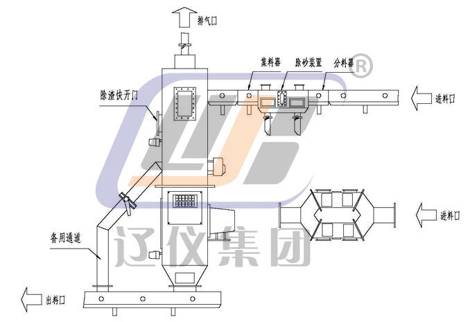 新鮮氧化鋁經(jīng)風(fēng)動(dòng)溜槽進(jìn)入本系統(tǒng)。經(jīng)過(guò)分料器將物料分為兩路,分別進(jìn)入除砂裝置,進(jìn)行除砂后匯入集料器進(jìn)入集料箱,在此除渣。氣體由排氣口引出,物料堆積到料位計(jì)時(shí),開(kāi)關(guān)控制給料器給料,沖板流量計(jì)開(kāi)始計(jì)量,流量積算儀顯示瞬時(shí)流量、累計(jì)流量。流量大小可根據(jù)實(shí)際生產(chǎn)需要通過(guò)流量調(diào)節(jié)器設(shè)定,給料器自動(dòng)調(diào)節(jié)。當(dāng)集料箱無(wú)料時(shí),料位開(kāi)關(guān)控制給料器自動(dòng)關(guān)閉。該過(guò)程消除了高壓風(fēng)對(duì)沖板流量計(jì)的影響。物料經(jīng)沖板流量計(jì)的計(jì)量后進(jìn)入下溜槽,直到凈化系統(tǒng)。當(dāng)下溜槽發(fā)生堵料堆積到下料位計(jì)時(shí),料位開(kāi)關(guān)控制給料器關(guān)閉,避免下溜槽物料越堆越多,保持溜槽順暢,使生產(chǎn)有效均衡進(jìn)行。