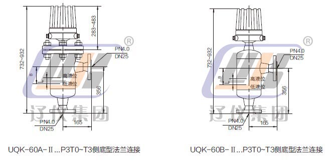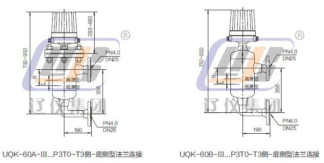 注:1、B-低液位 L-控制范圍